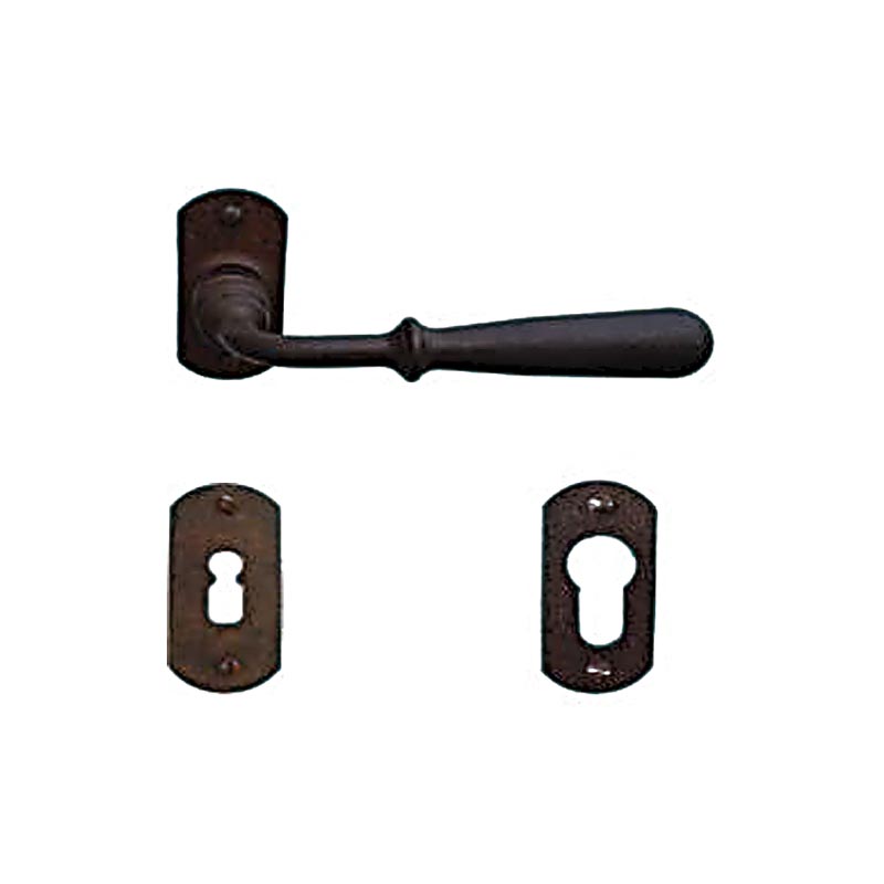 MANIGLIA PER PORTA FORO YALE, ROSETTA OVALE. COLOR FERRO VECCHIO